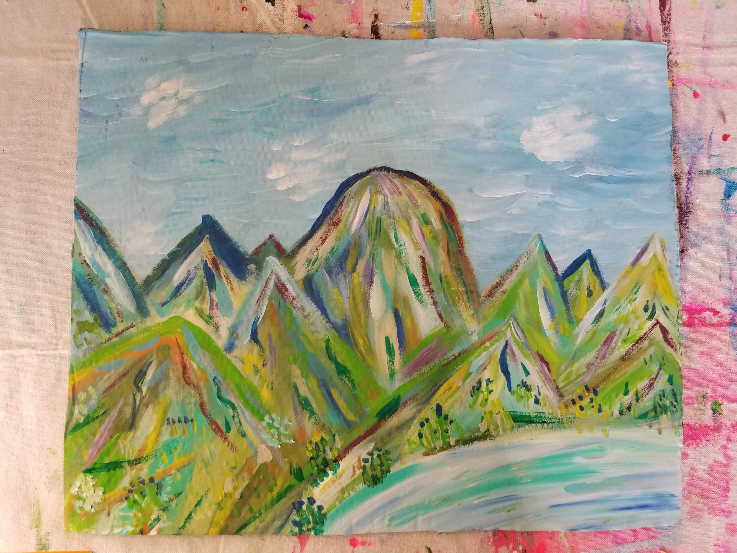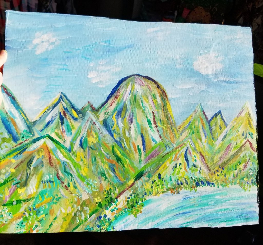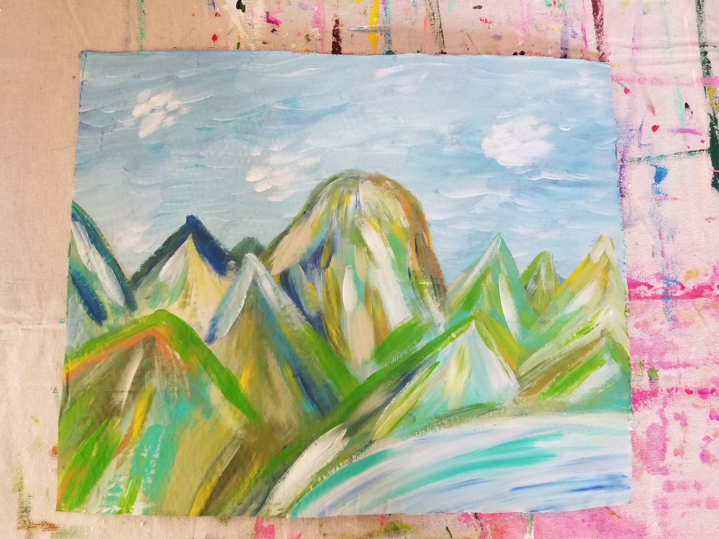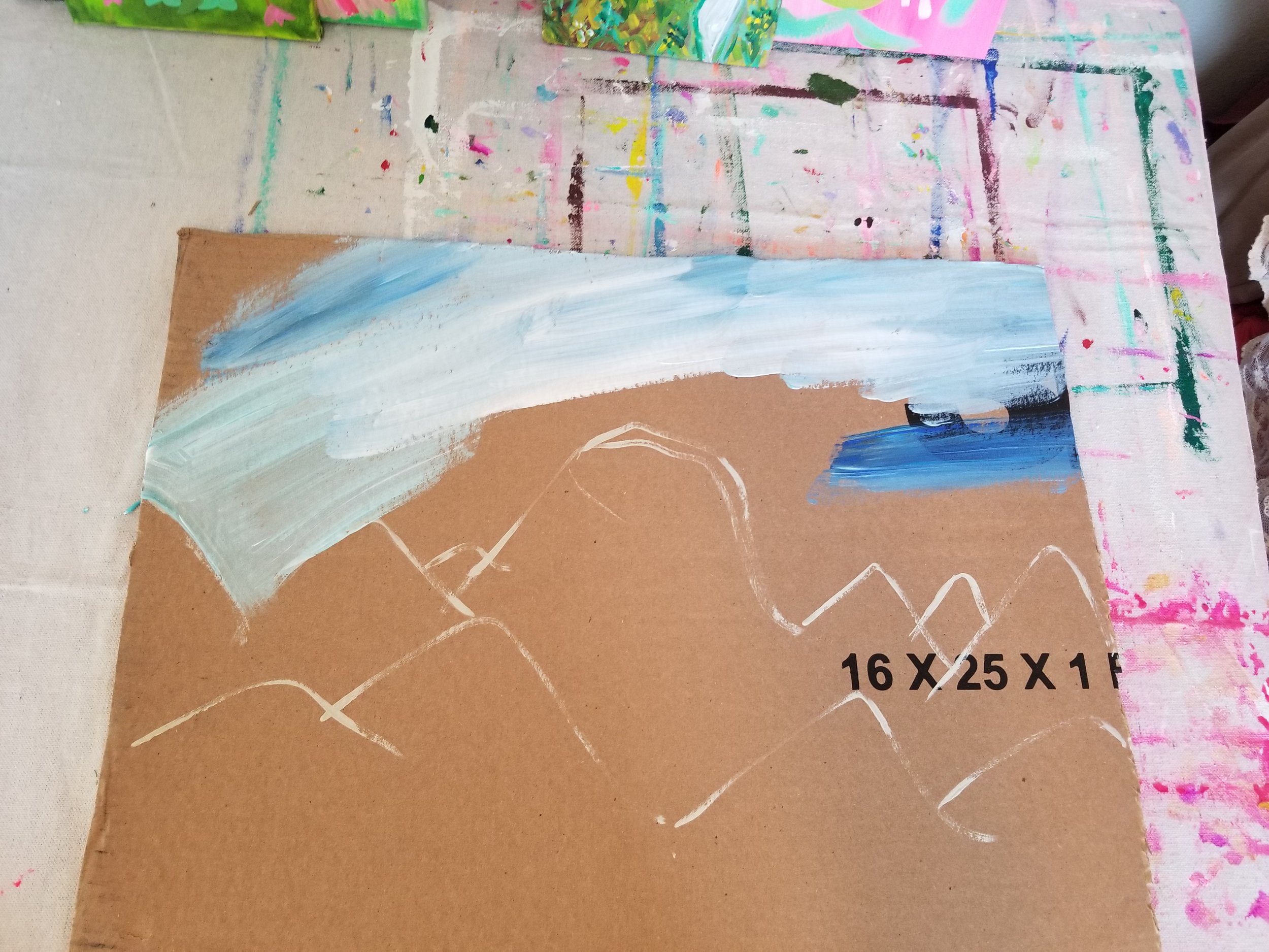 Cardboard is a super fun medium to paint on because it absorbs so differently than canvas – making for this quick and easy Pacific Northwest landscape! Check out the evolution of these cardboard mountains below.